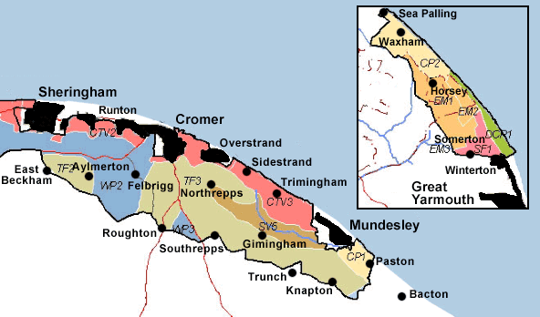 Soft, easily eroded coastal cliffs and their hinterland, with well-developed resort towns and smaller villages, from Weybourne to Mundesley